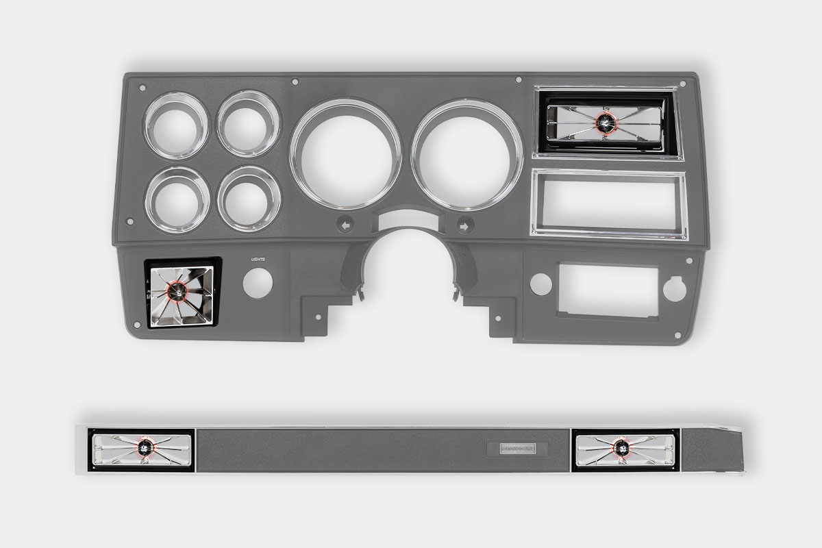 Upgrade your flimsy, worn-out plastic vents with sleek, durable billet aluminum TruFit vents—designed to give your truck’s interior a bold, refined look. Engineered as a direct, drop-in replacement, these vents are specifically crafted for A/C-equipped ’81-’87 Chevy pickups. (For heater-only models, factory A/C gauge and passenger panels are required for compatibility.)