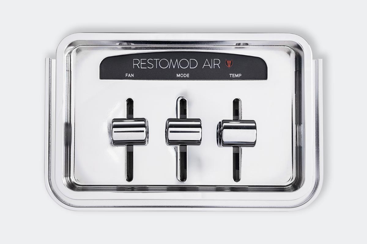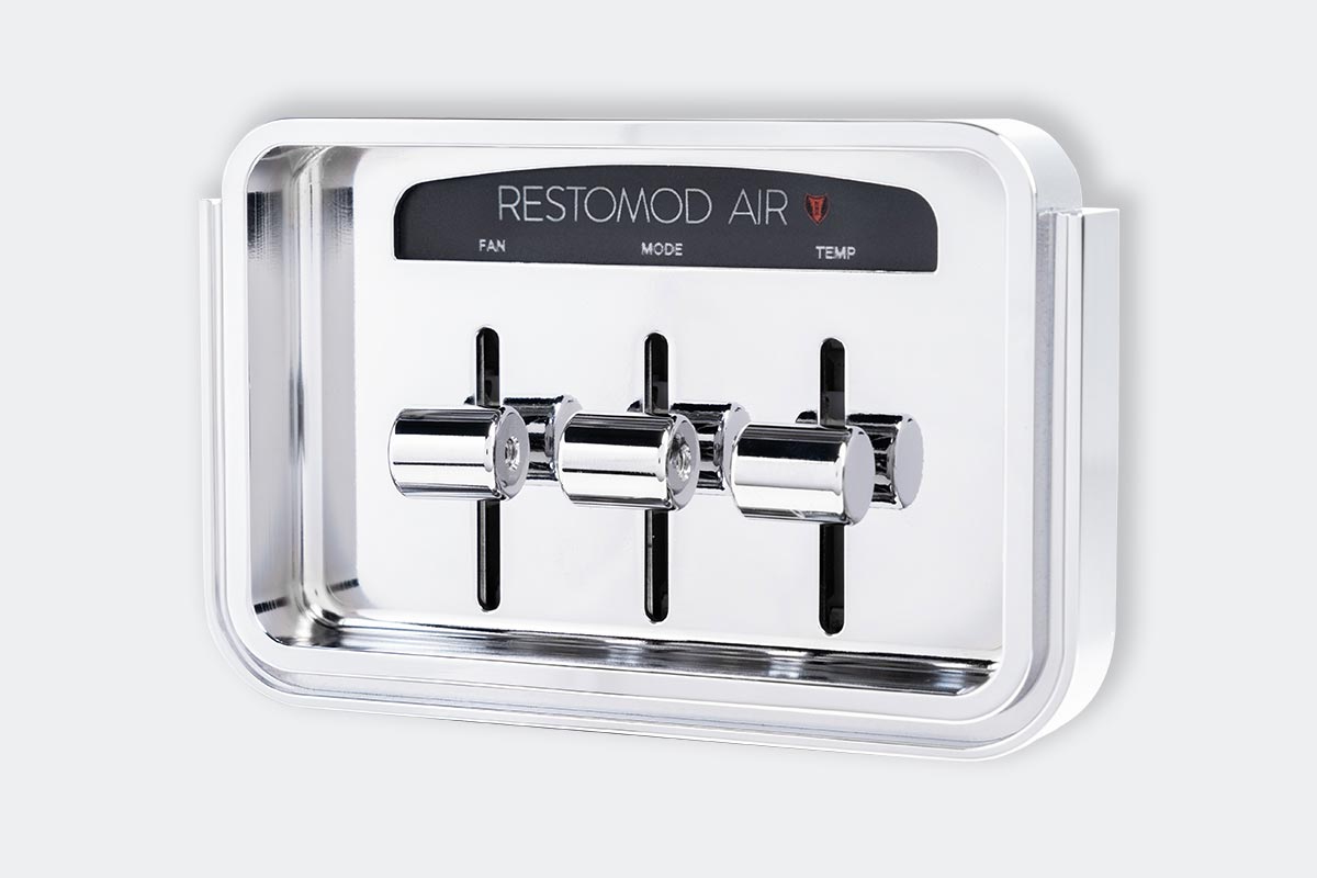 The 1960-63 Chevy Truck X-ACT FIT air conditioning control head is meticulously machined and utilizes three billet knobs for mode functions (dash, floor, defrost), another for temperature adjustments (hot, cold, and everything in between), and an infinitely adjustable speed blower motor knob. It’s a simple plug-and-play installation.