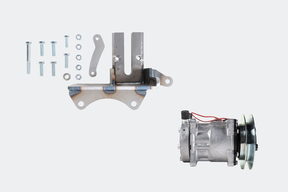 This compressor & mounting bracket kit is engineered with a simple design to mount your Sanden compressor with ease. Restomod Air mounting brackets are rigid in design and specific to your engine type and include all mounting hardware needed.