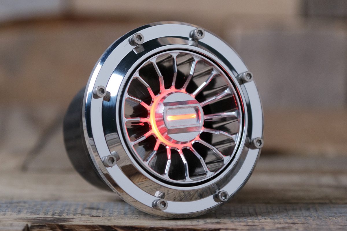 The Diablo Mini with Cap Screws Halo Vent comes with a 16-vane design. These 16 vanes have perfectly engineered beveled edges to give a seamless look and are inset in the rim of the Diablo Mini with Cap Screws housing. Each vane starts out just below the rim of the housing at 90 degrees then sharply transitions to 45 degrees towards the center. This gives an aggressive mechanical feel to the A/C vent, unlike anything seen before. Milled from a solid piece of 6061/T6 Aluminum the Diablo Mini with Cap Screws Halo A/C Vent screams badass.