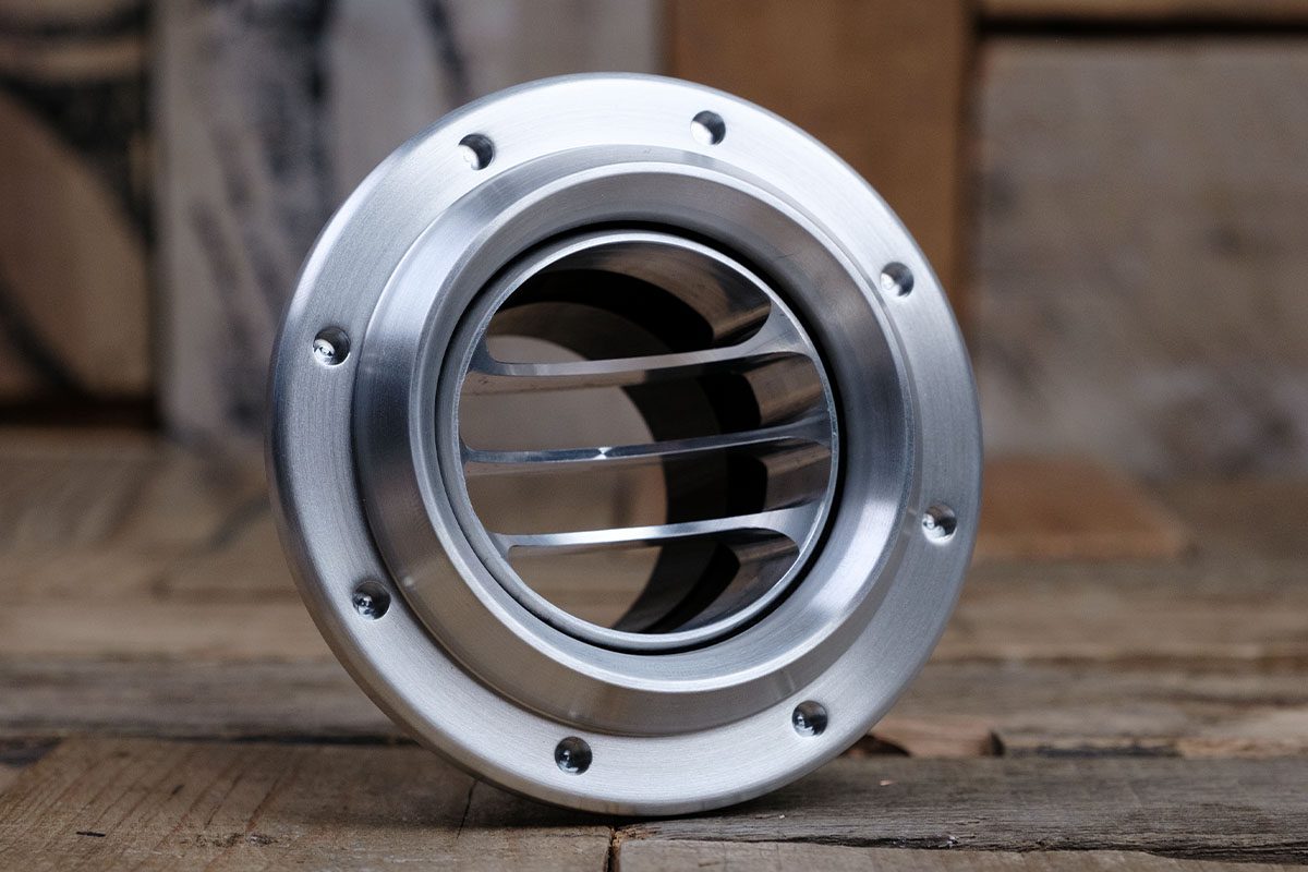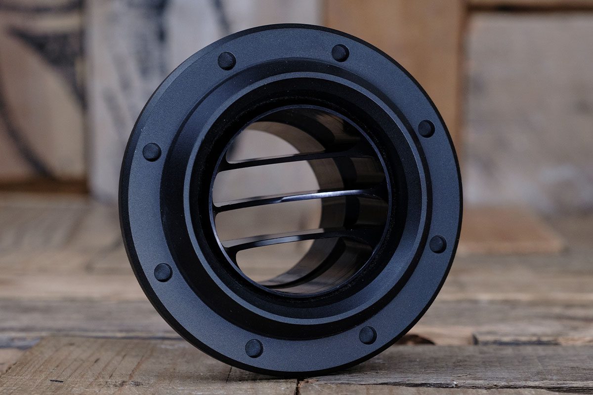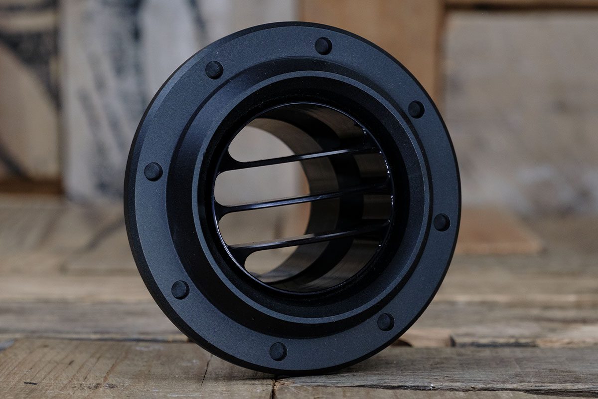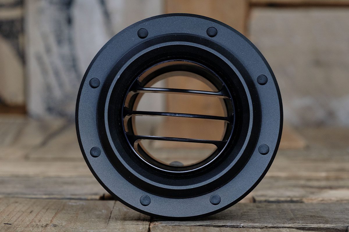 The Diablo Revolver Tres Vane A/C Vent includes a meticulously crafted CNC Machined 6061/T6 Aluminum housing and ball, which can be anodized to match your desired color scheme. Restomod Air maintains a stock of three finishes at all times: Satin, Polished (Bezel Only), and Synister Black. This wide range of options ensures that you can seamlessly integrate the Tres vent into your vehicle’s interior design.