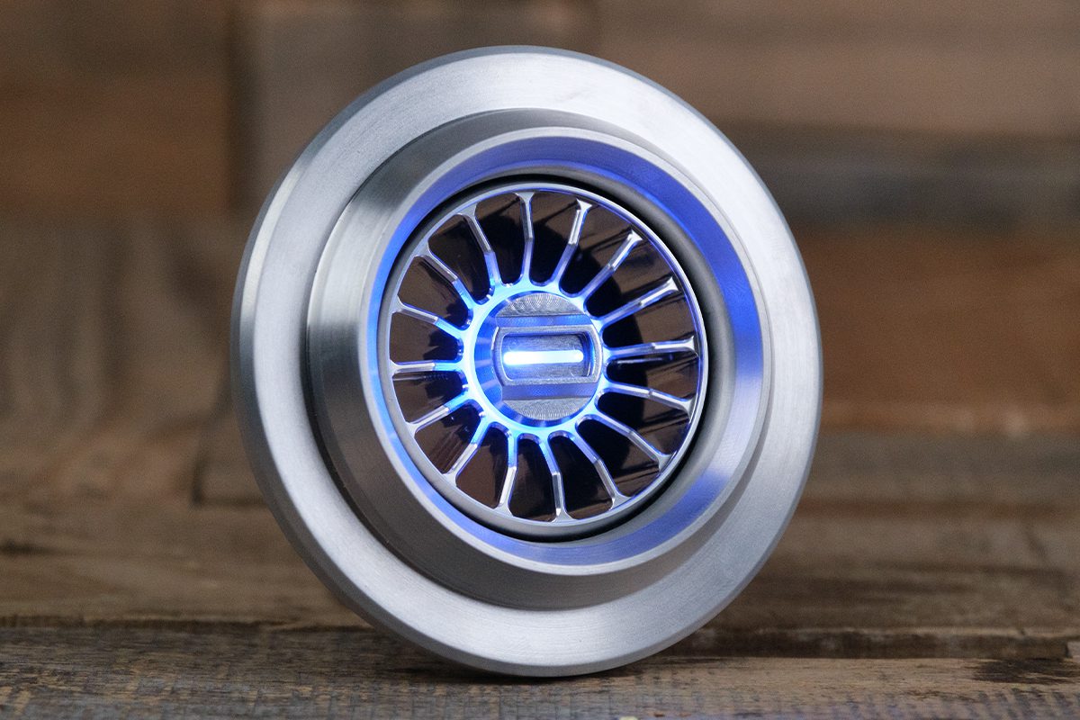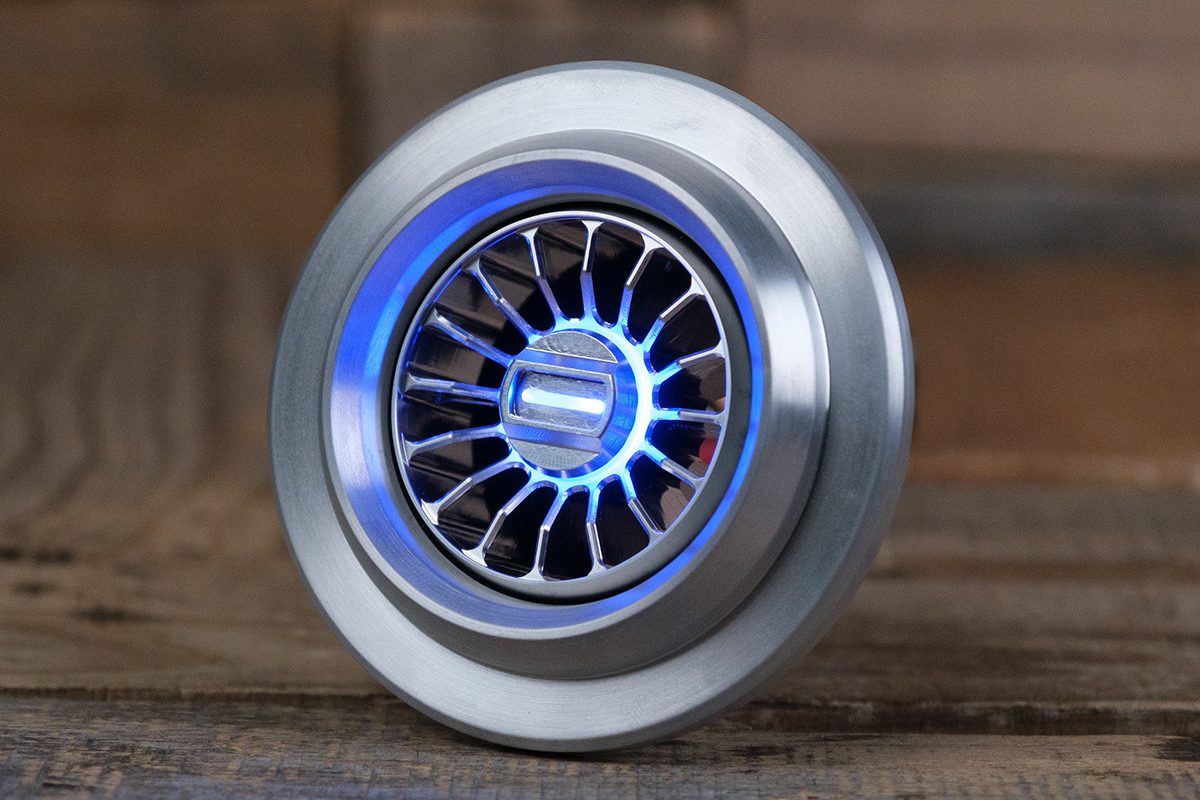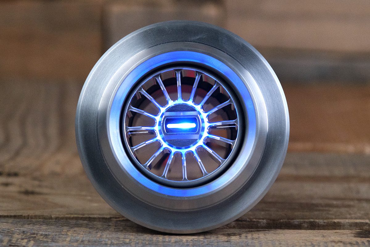 The Diablo Smooth Halo Vent comes with a 16-vane design. These 16 vanes have perfectly engineered beveled edges to give a seamless look and are inset in the rim of the Diablo Smooth housing. Each vane starts out just below the rim of the housing at 90 degrees then sharply transitions to 45 degrees towards the center. This gives an aggressive mechanical feel to the A/C vent, unlike anything seen before. Milled from a solid piece of 6061/T6 Aluminum the Diablo Smooth Halo A/C Vent screams badass.