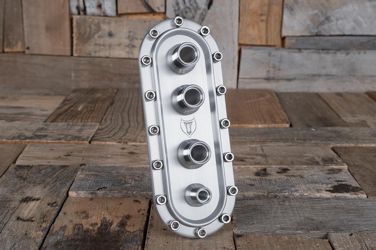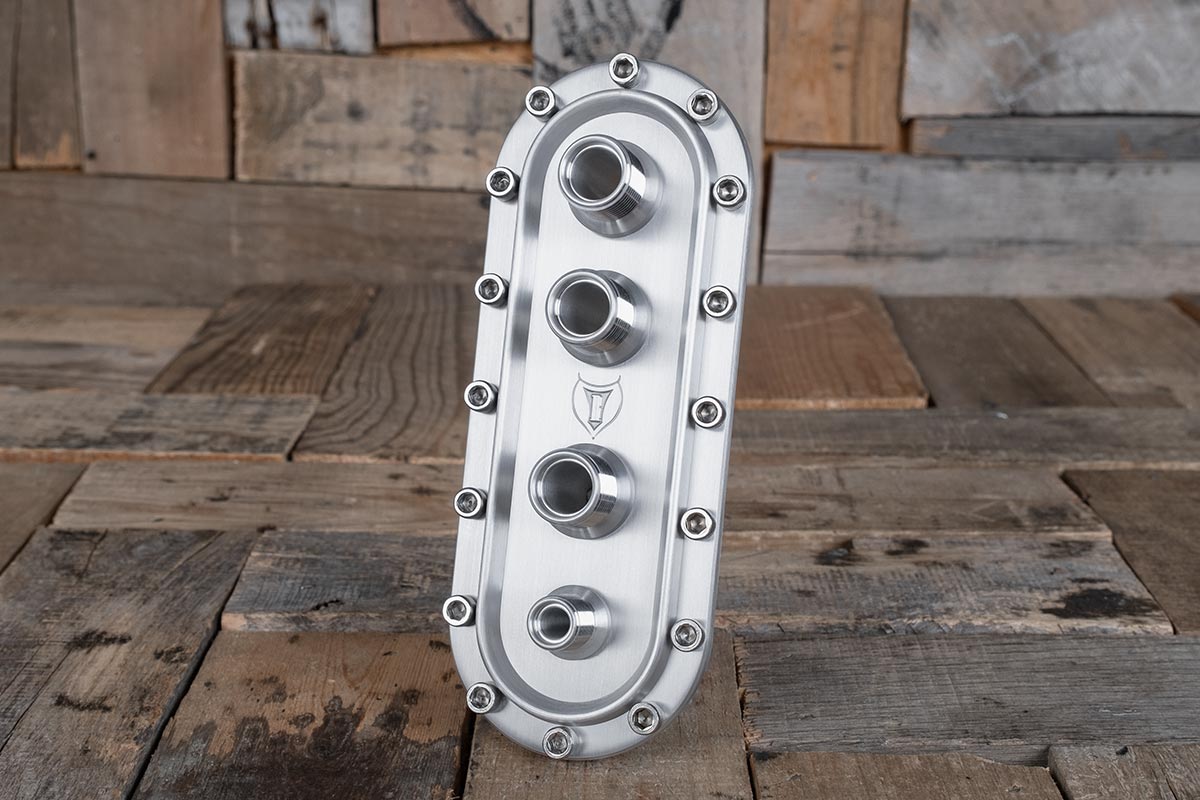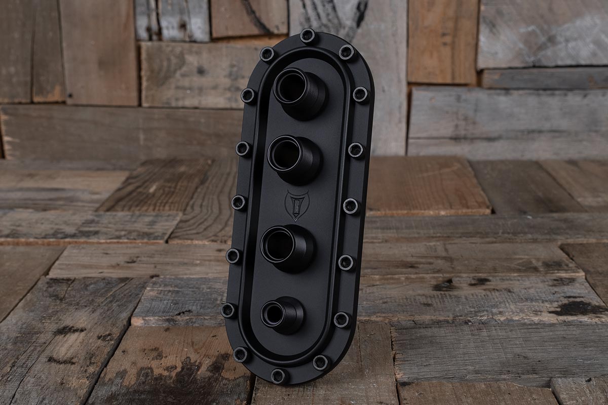 The Diablo Vertical A/C Bulkhead with Cap Screws is an impressive way to finish off your engine compartment. Bringing all your a/c lines into a clean looking bulkhead like this gives that professional look that grommets just can’t do. Additionally, opening your hood to show off the work you have done to your engine compartment should not be ruined by hoses and cables laying loose around. The Diablo Vertical A/C Bulkhead with Cap Screws is one of the top bulkheads that professional builders use in their builds. The simple vertical design with that aggressive cap screw finish is the desired look that only Restomod Air has. Finally, this piece is milled from a solid piece of 6061/T6 Aluminum, Diablo Vertical A/C Bulkhead with Cap Screws screams badass. For more info, check out our blog.