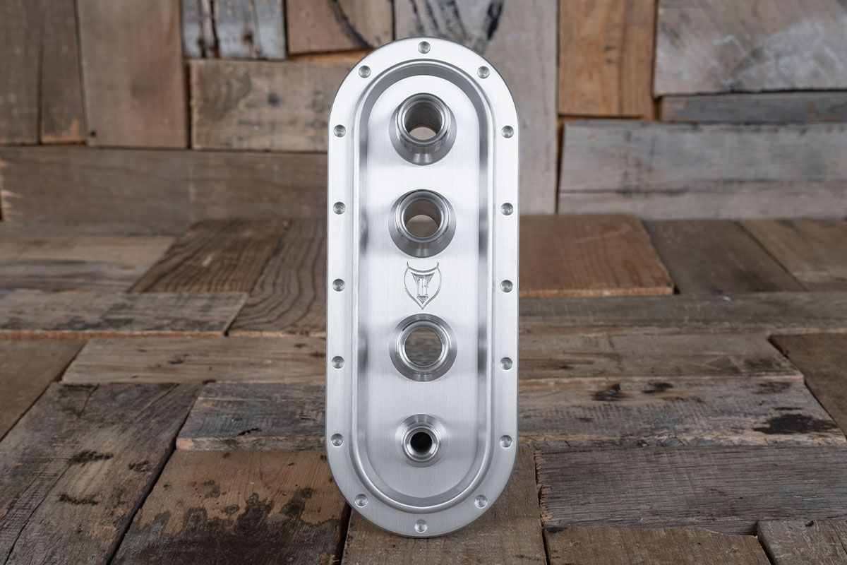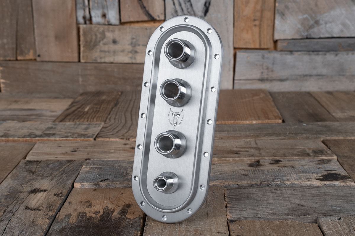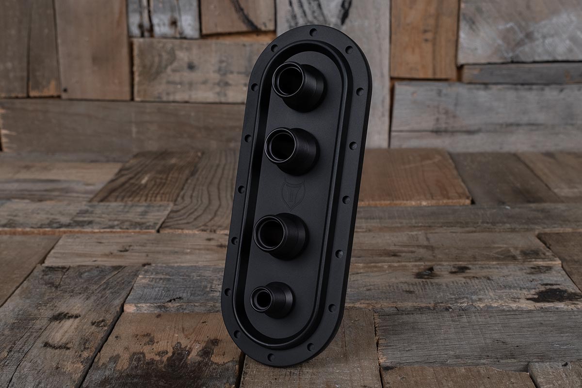 The Diablo Vertical Revolver A/C Bulkhead is an impressive way to finish off your engine compartment. Bringing all your a/c lines into a clean looking bulkhead like this gives that professional look that grommets just can’t do. Additionally, opening your hood to show off the work you have done to your engine compartment should not be ruined by hoses and cables laying loose around. The Diablo Vertical Revolver A/C Bulkhead is one of the top bulkheads that professional builders use in their builds. The simple vertical design is the desired look that only Restomod Air has. Finally, this piece is milled from a solid piece of 6061/T6 Aluminum, Diablo Vertical Revolver A/C Bulkhead screams badass. For more info, check out our blog.