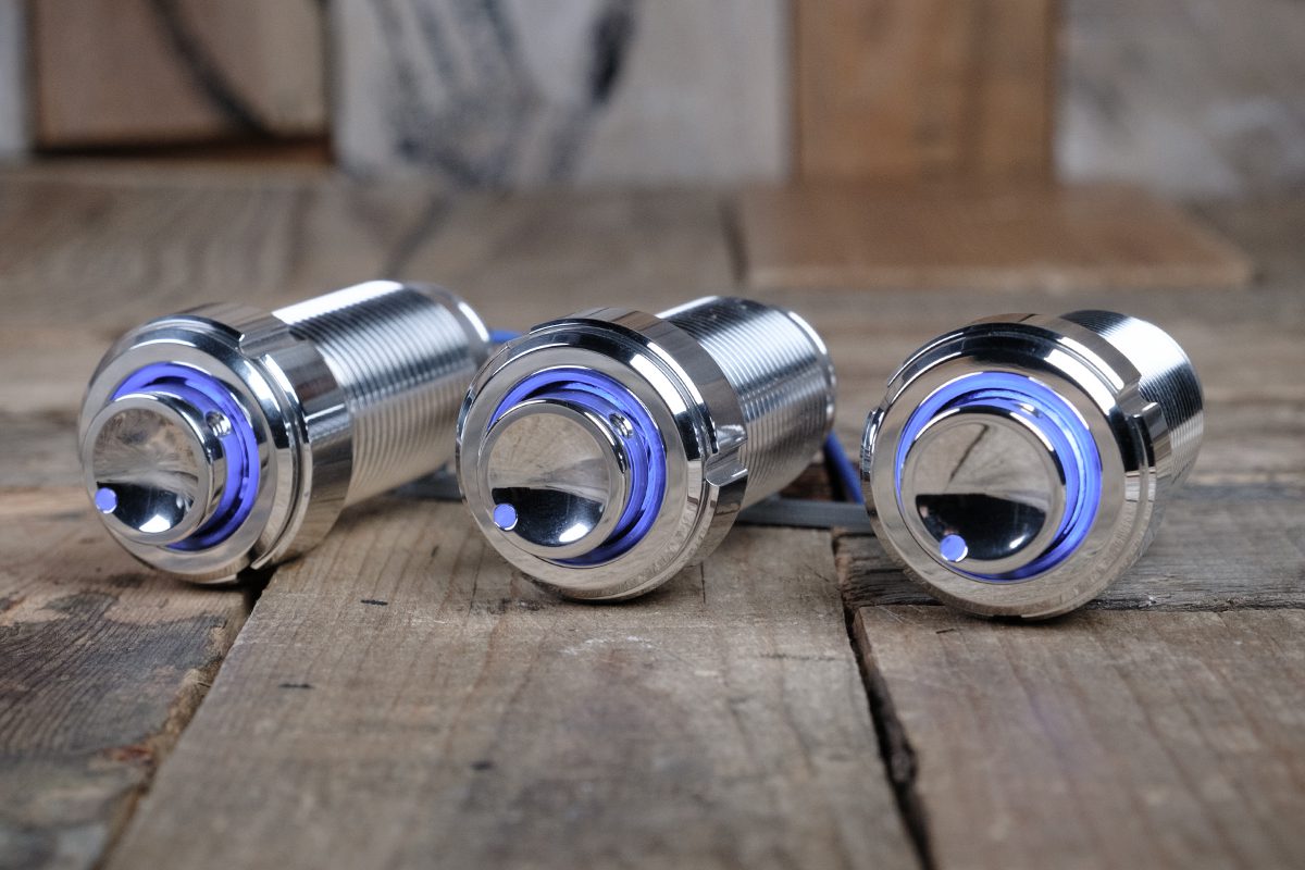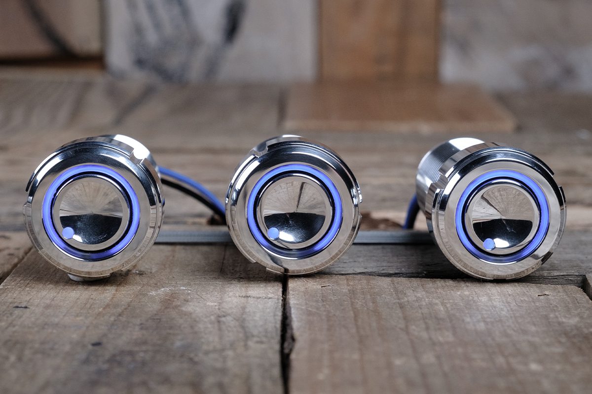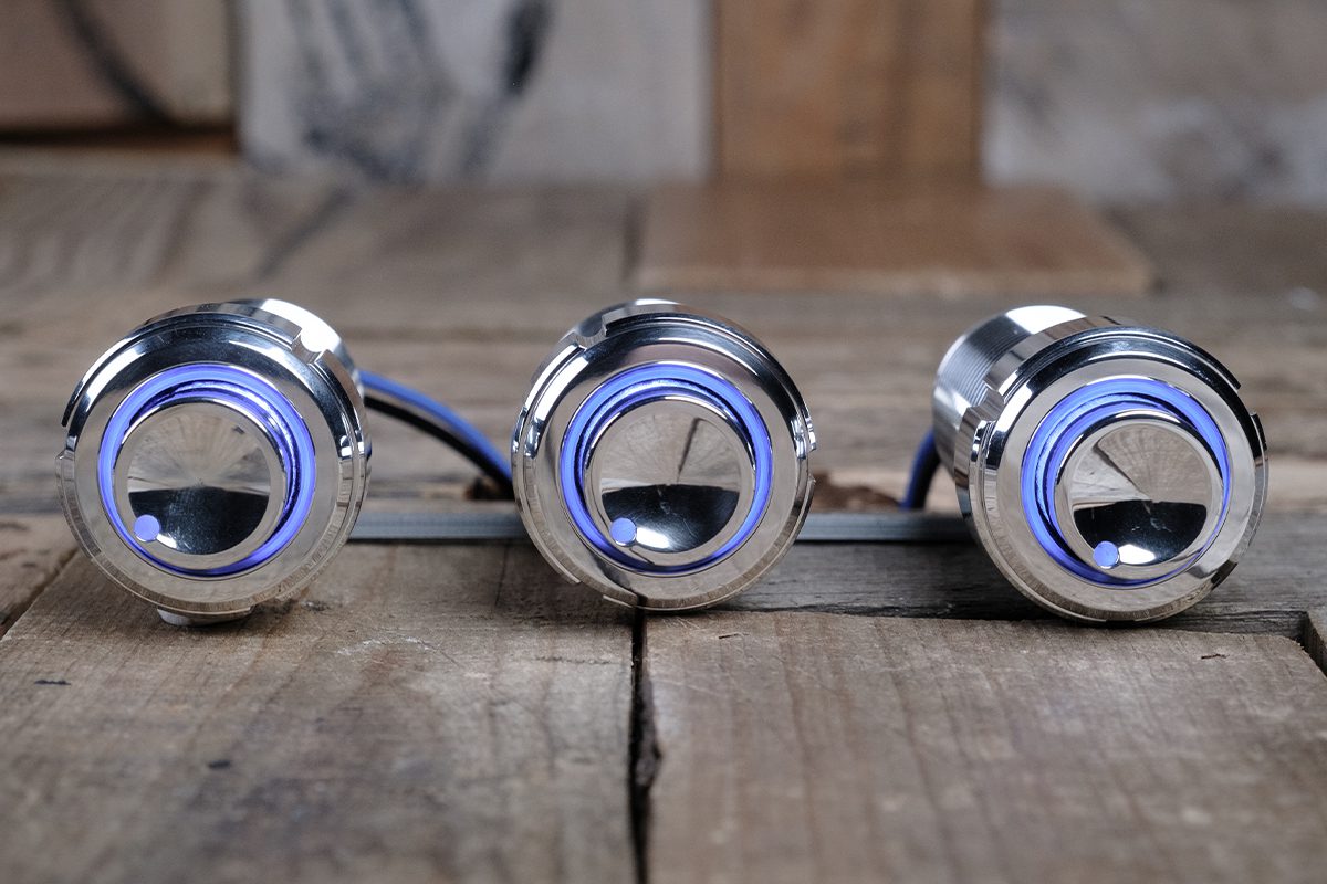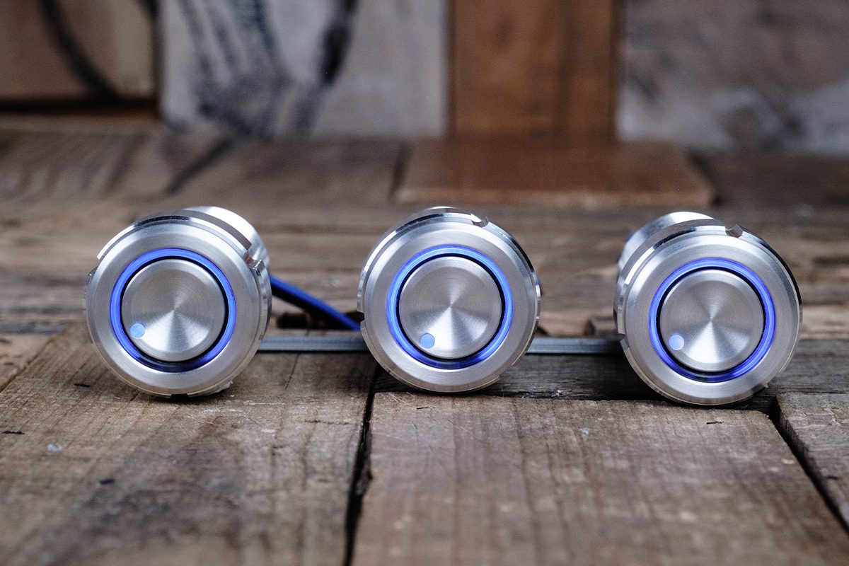If you are wanting a completely flush-looking dash this A/C controller is for you. The Elevate Pod controller is smooth to the touch. You can individually mount each push button knob in any position you want. That means these 3 knobs can either be mounted in a traditional group or mounted individually anywhere on your dash giving you the ultimate in customization.