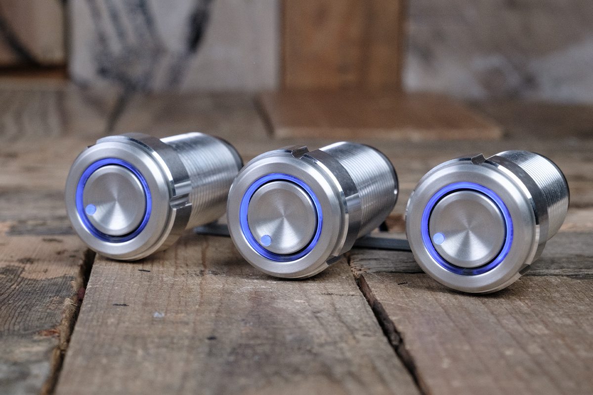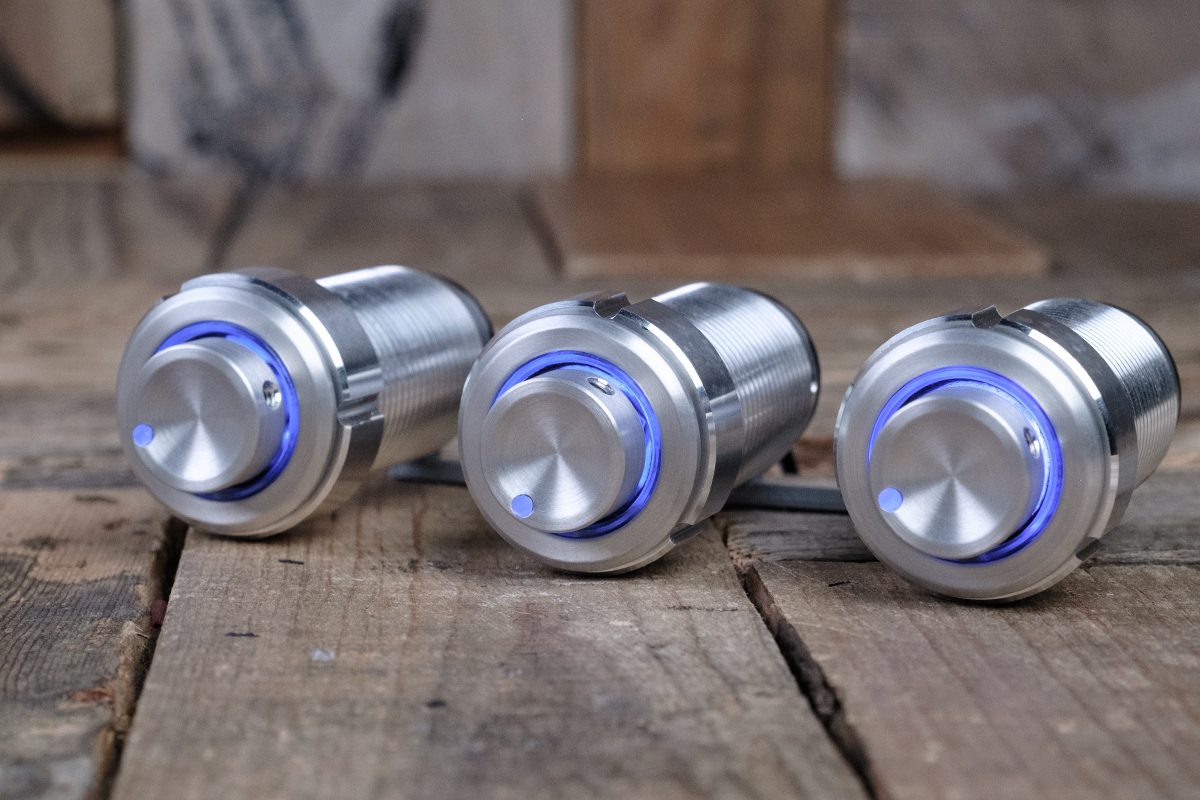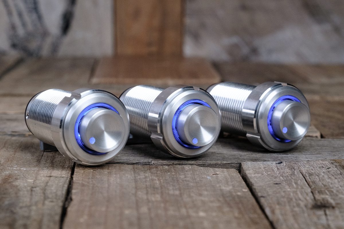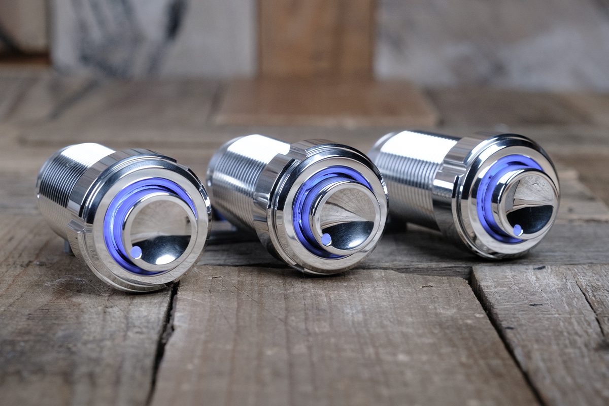 This Blue LED push-button design for your custom A/C controller is nothing less than amazing. Controlling your Restomod Air system is now even easier. Elevate Pod allows for custom backlit options of Blue, White, Red, Green LED, or a Filament Bulb.