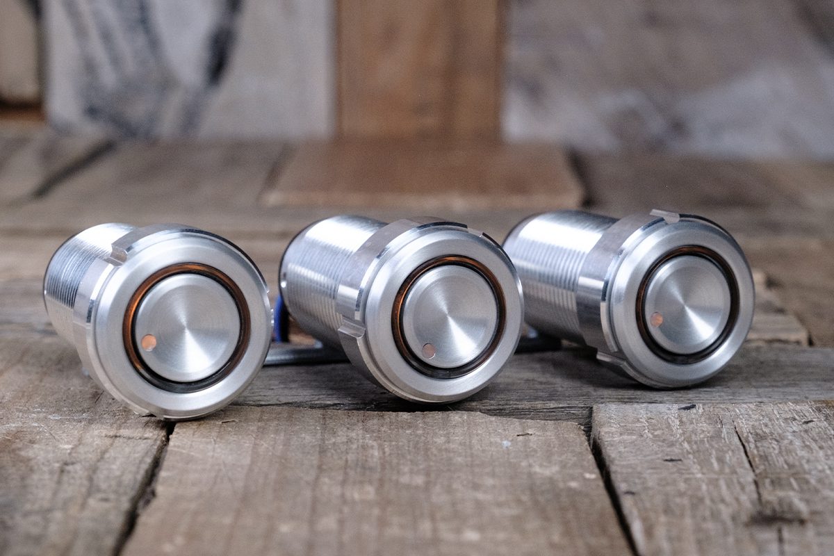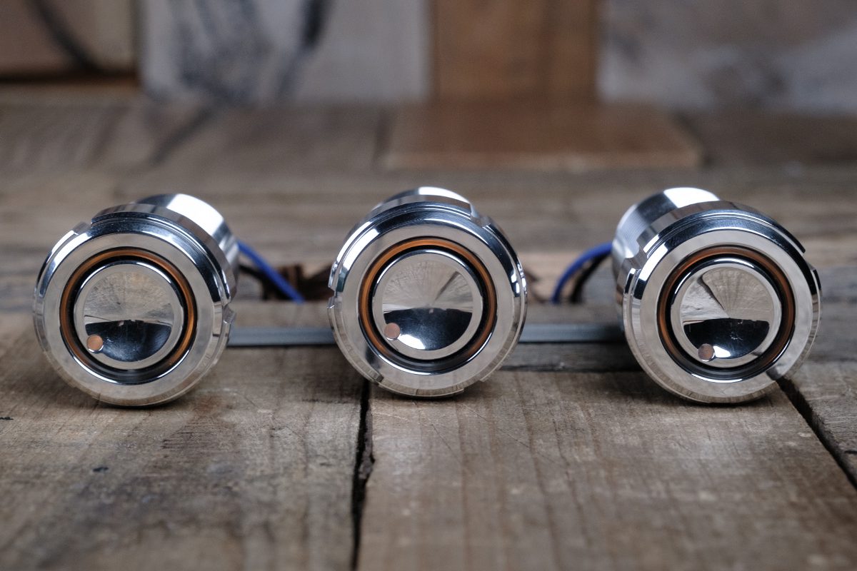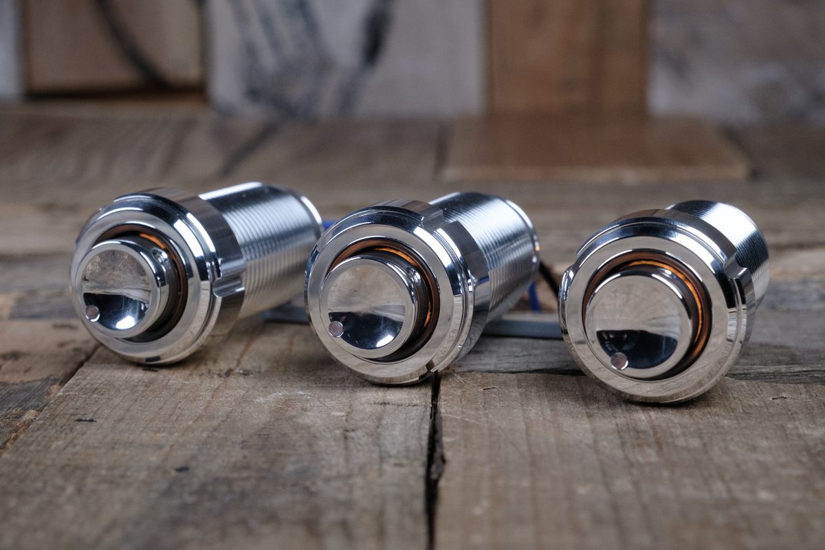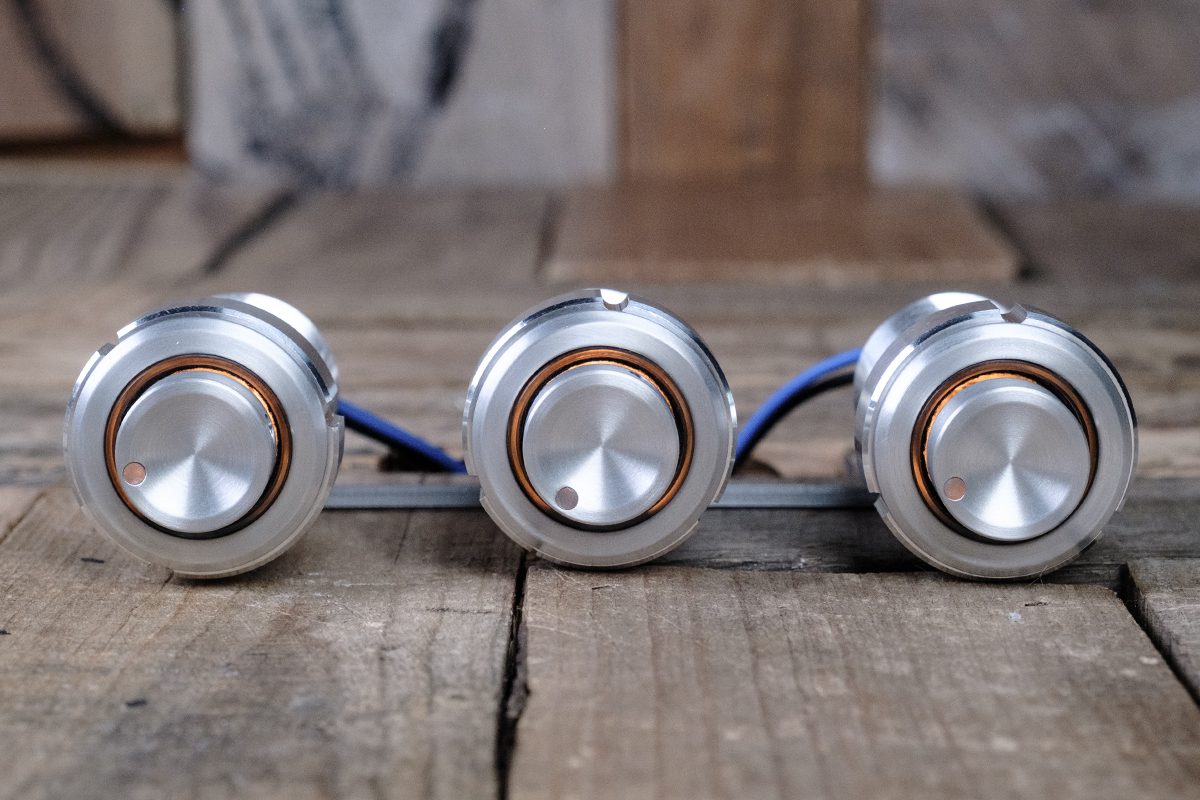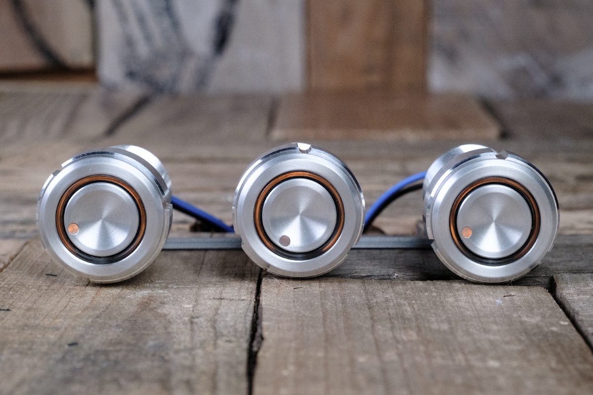 If you are wanting a completely flush-looking dash this A/C controller is for you. The Elevate Pod controller is smooth to the touch. You can individually mount each push button knob in any position you want. That means these 3 knobs can either be mounted in a traditional group or mounted individually anywhere on your dash giving you the ultimate in customization.