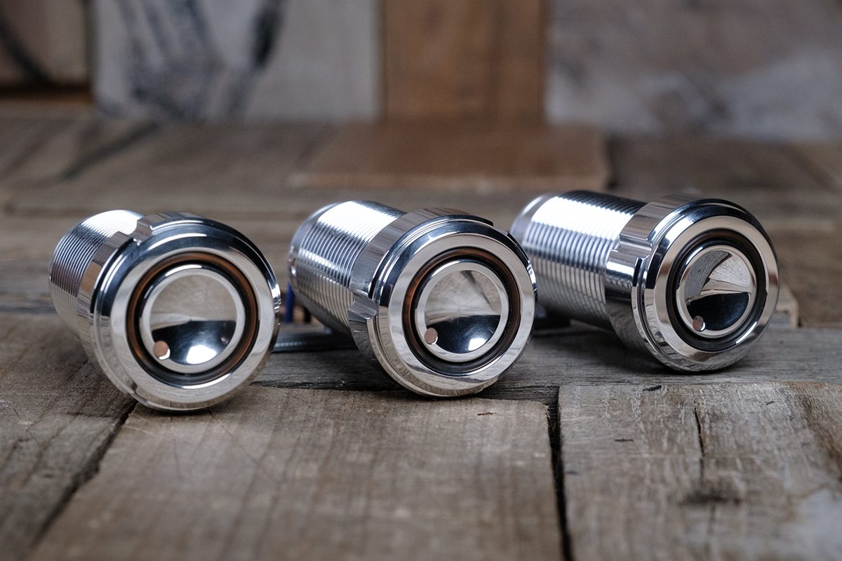 This Filament LED push-button design for your custom A/C controller is nothing less than amazing. Controlling your Restomod Air system is now even easier. Elevate Pod allows for custom backlit options of Blue, White, Red, Green LED, or a Filament Bulb.