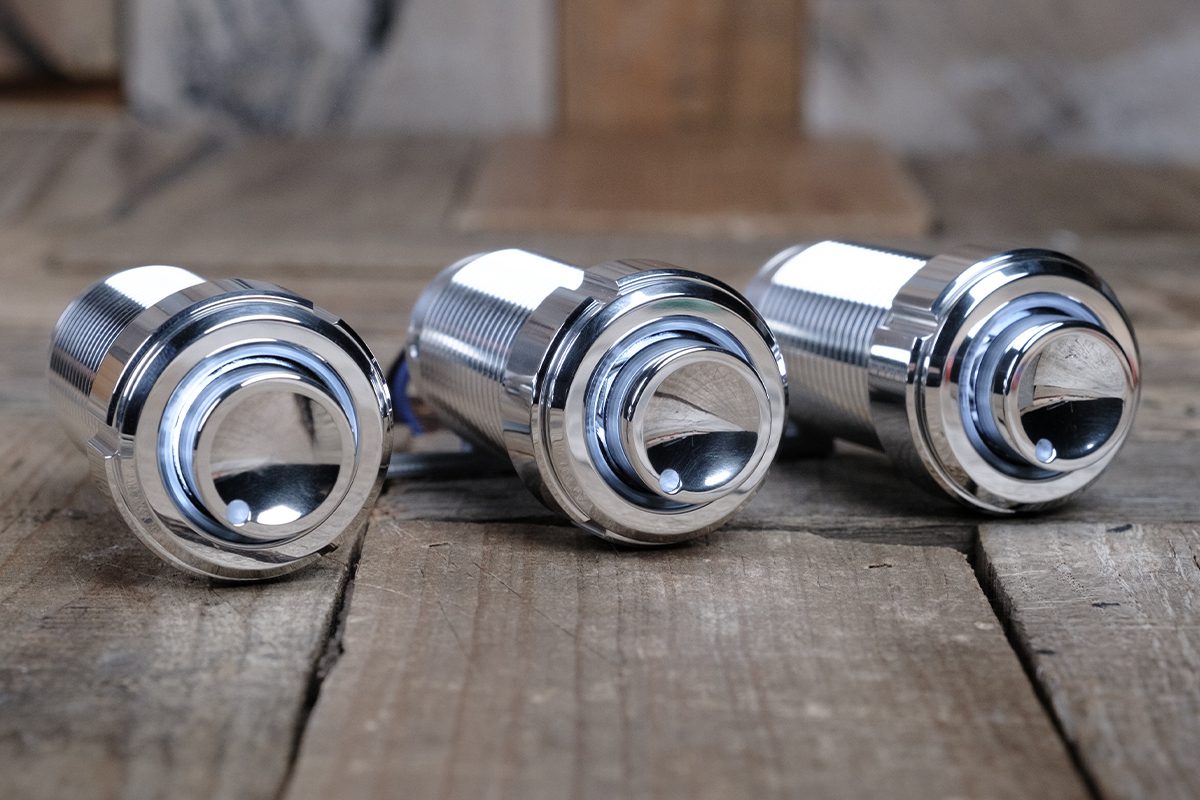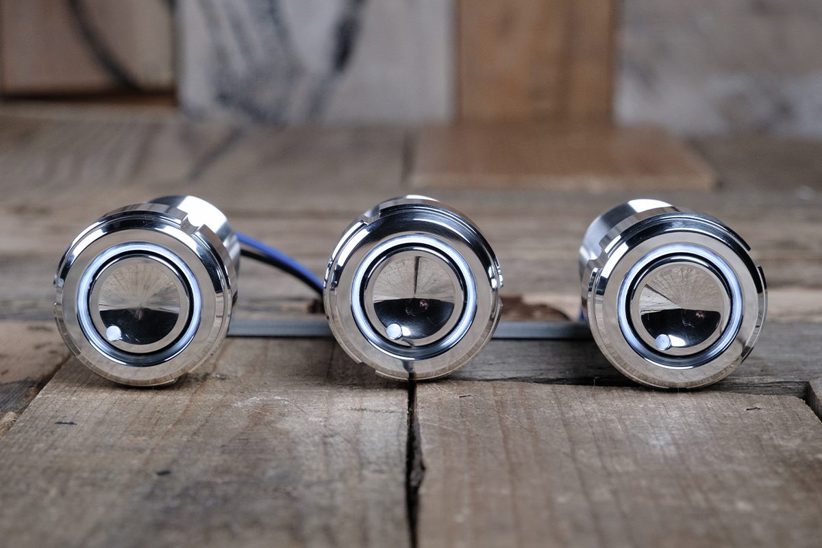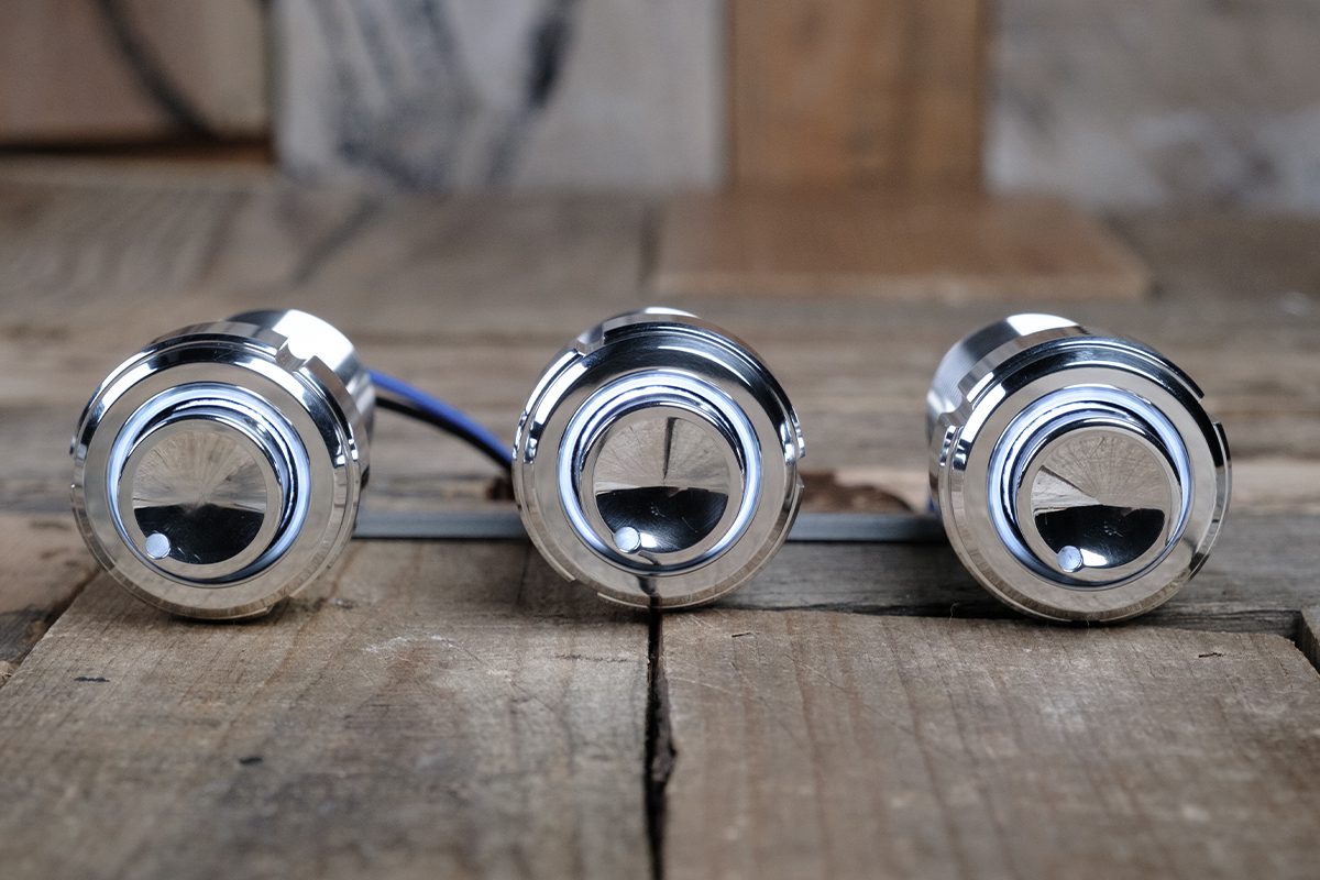 If you are wanting a completely flush-looking dash this A/C controller is for you. The Elevate Pod controller is smooth to the touch. You can individually mount each push button knob in any position you want. That means these 3 knobs can either be mounted in a traditional group or mounted individually anywhere on your dash giving you the ultimate in customization.