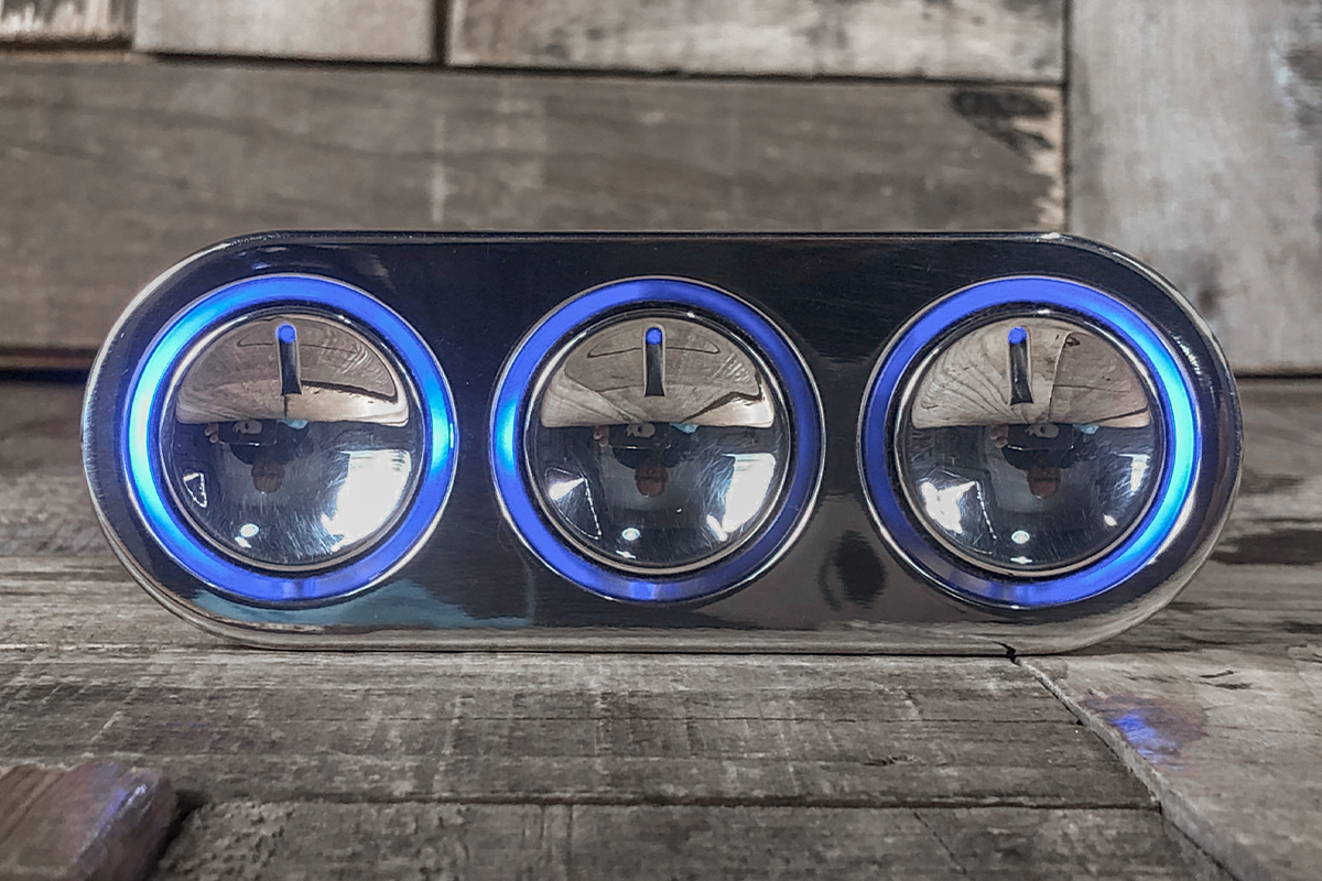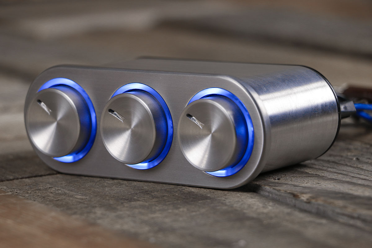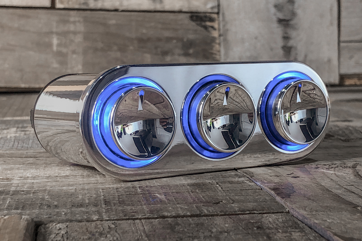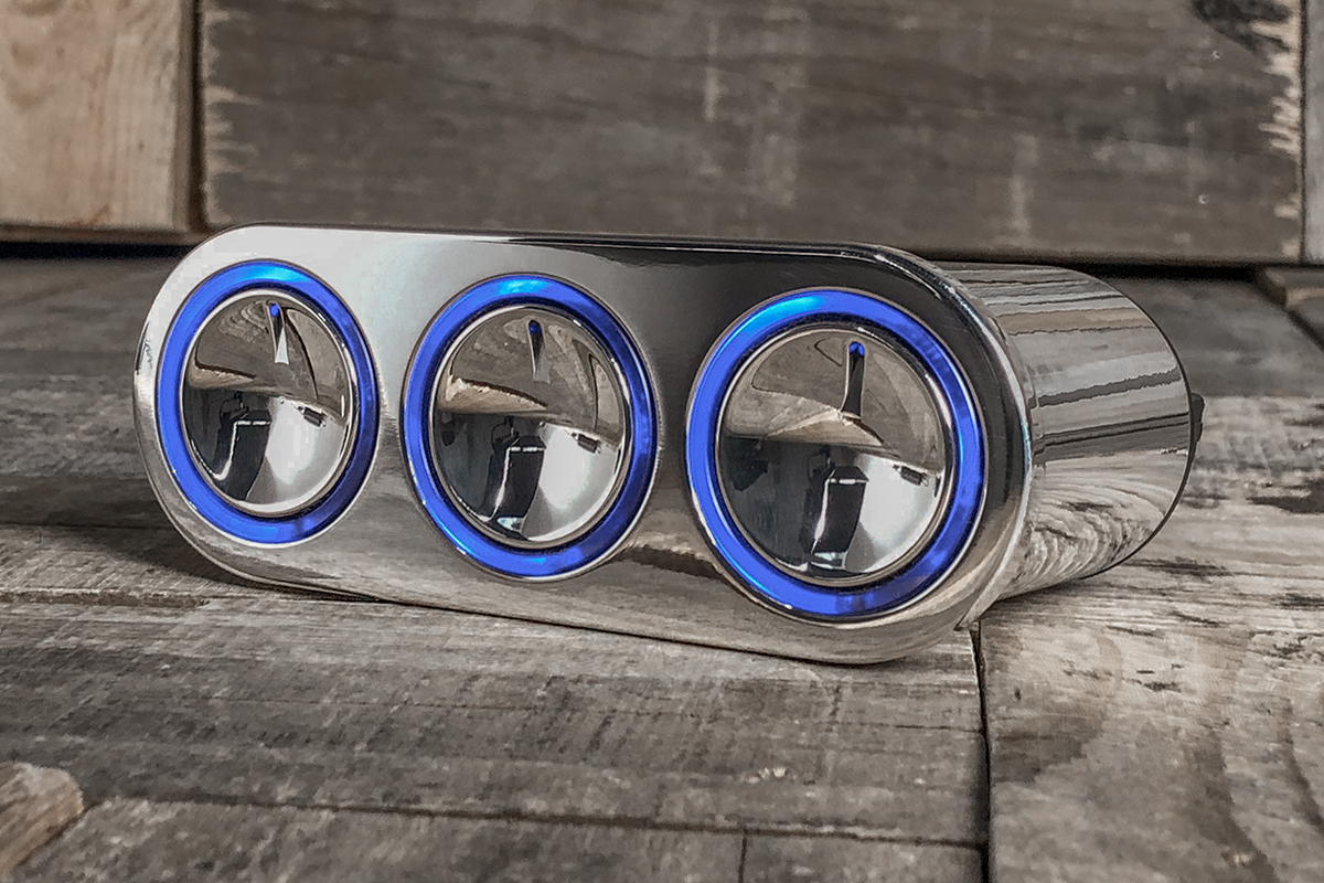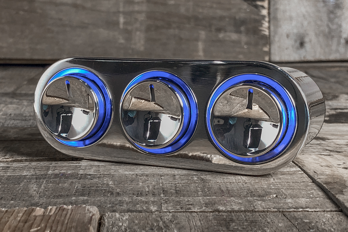 One of the most talked-about A/C Controllers on the market is the Blue LED Elevate Push Button A/C Controls. The Elevate is as sleek as they come. If you are wanting a completely flush-looking dash this is for you. There is nothing else like it. This controller is smooth. You can individually push in your Fan, Mode, Temp knobs and they pop out to allow for easy speed, mode, and temperature adjustments. When you are done push in the backlit knob and it pops back to allow for a flush, clean-looking dash.