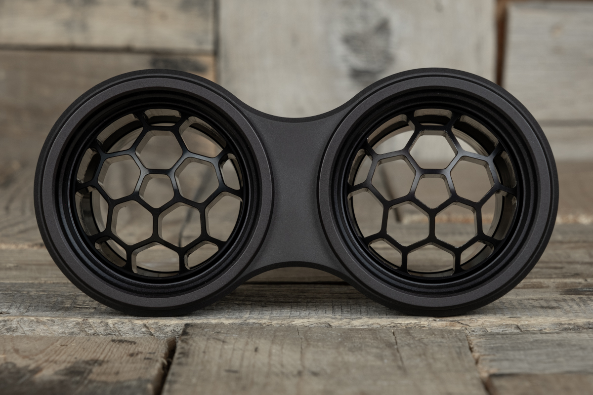 The aluminum housing, ball, and plate can be anodized to match your preferred color scheme. Restomod Air maintains a stock of three finishes at all times: Satin, Polished, and Sinister Black. This extensive range of options ensures effortless integration of the NUK Dual Deep Dish Helix Vane A/C Vent into your vehicle’s interior design.