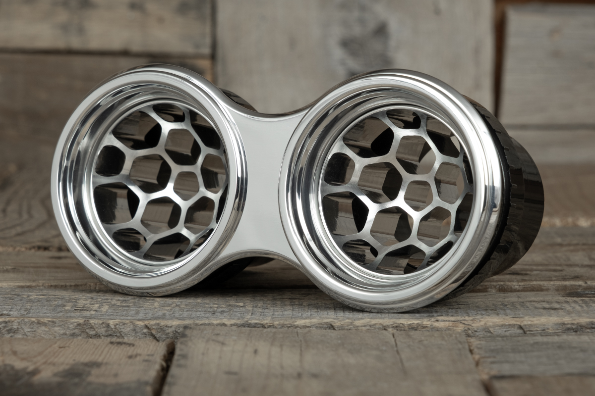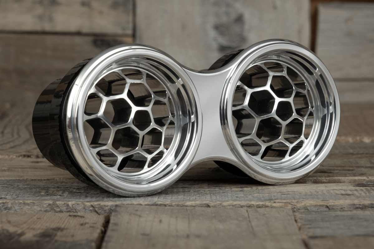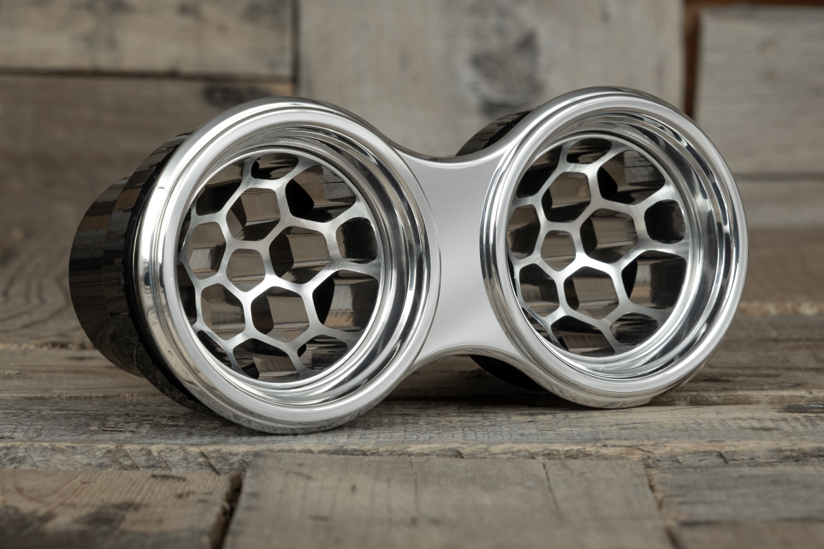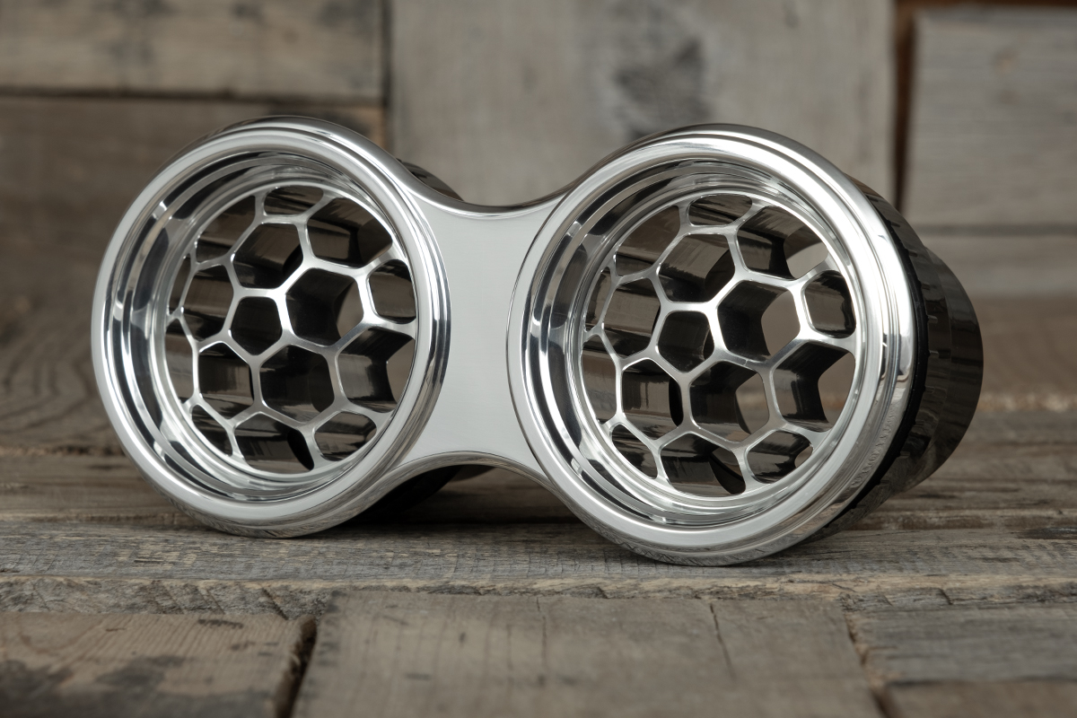 Are you wanting something distinctive and exclusive? The NUK Series Air Conditioning vents by Restomod Air are your answer. This design has our patented Concave/Convex feature that offers two distinct appearances simply by rotating the vent ball. Milled from a single piece of 6061/T6 Aluminum, the NUK Dual Deep Dish Helix Vane A/C Vent showcases exceptional quality and precision engineering. Our flawless CNC machining finish provides a tactile experience that underscores its superior craftsmanship that seamlessly blends classic elegance with a modern update, creating a striking visual impact.