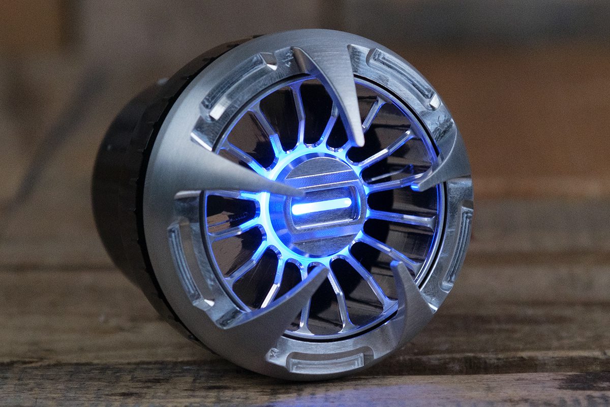 The Razor Halo Vent comes with a 16-vane design. These 16 vanes have perfectly engineered beveled edges to give a seamless look and are inset in the rim of the Razor housing. Each vane starts out just below the rim of the housing at 90 degrees then sharply transitions to 45 degrees towards the center. This gives an aggressive mechanical feel to the A/C vent, unlike anything seen before. Milled from a solid piece of 6061/T6 Aluminum the Razor Halo A/C Vent screams badass.