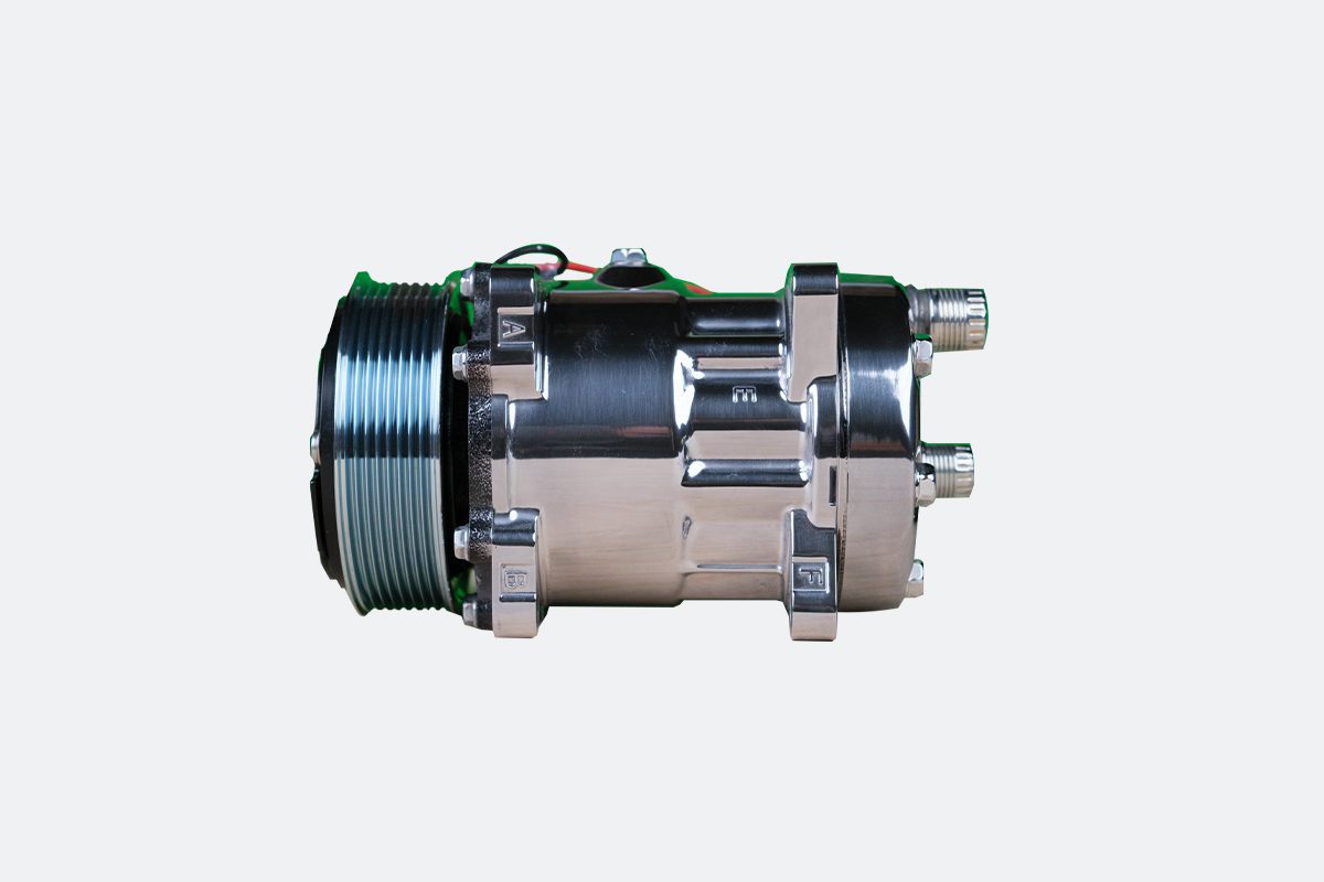 Description The Sanden SD7 Multi-Groove (Serpentine) R134a Air Conditioning compressor is used for a wide variety of applications and is available in Cast Aluminum, Polished finishes. All Restomod Air compressors are TRUE Sanden compressors not Sanden “like”. We don’t use knock-offs for our rides so why should you? That’s why we use the best in the world when it comes to ac compressors. Every vehicle air compressor we have comes prefilled with oil pre-oiled for easy installation. Like all of our products our compressors are all new never rebuilt and resold to you. One of our knowledgeable sales people can assist you in choosing the perfect air conditioner compressor for your restomod, muscle car, classic car or pro-touring build… just ask us. COMPRESSOR SPECS:: Lightweight, compact design 6,000 RPM continuous duty rating Low horsepower requirement Clean and attractive underhood appearance 8.5″ Depth x 5.75″ Diameter Designed for 5/8″ and fan belts R134a refrigerant