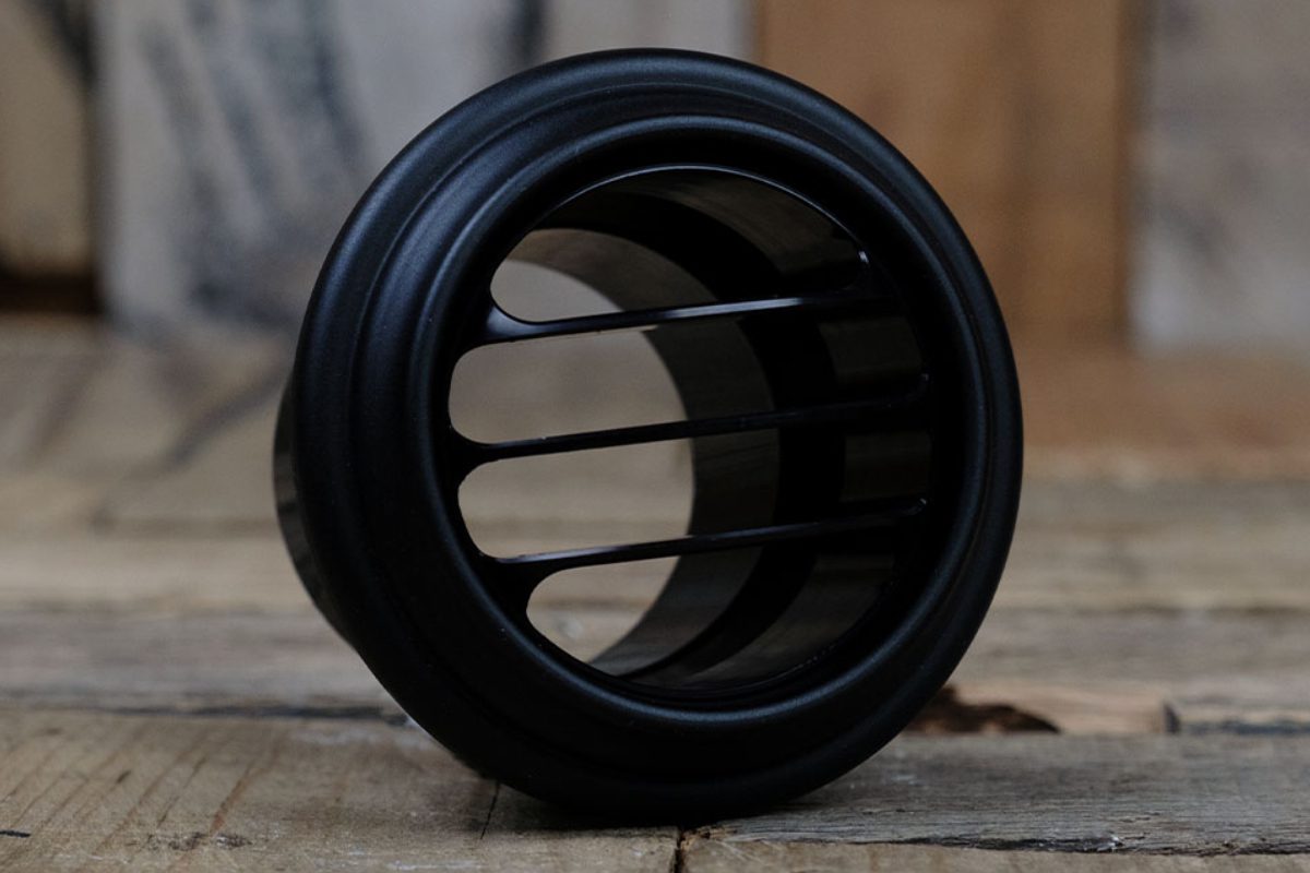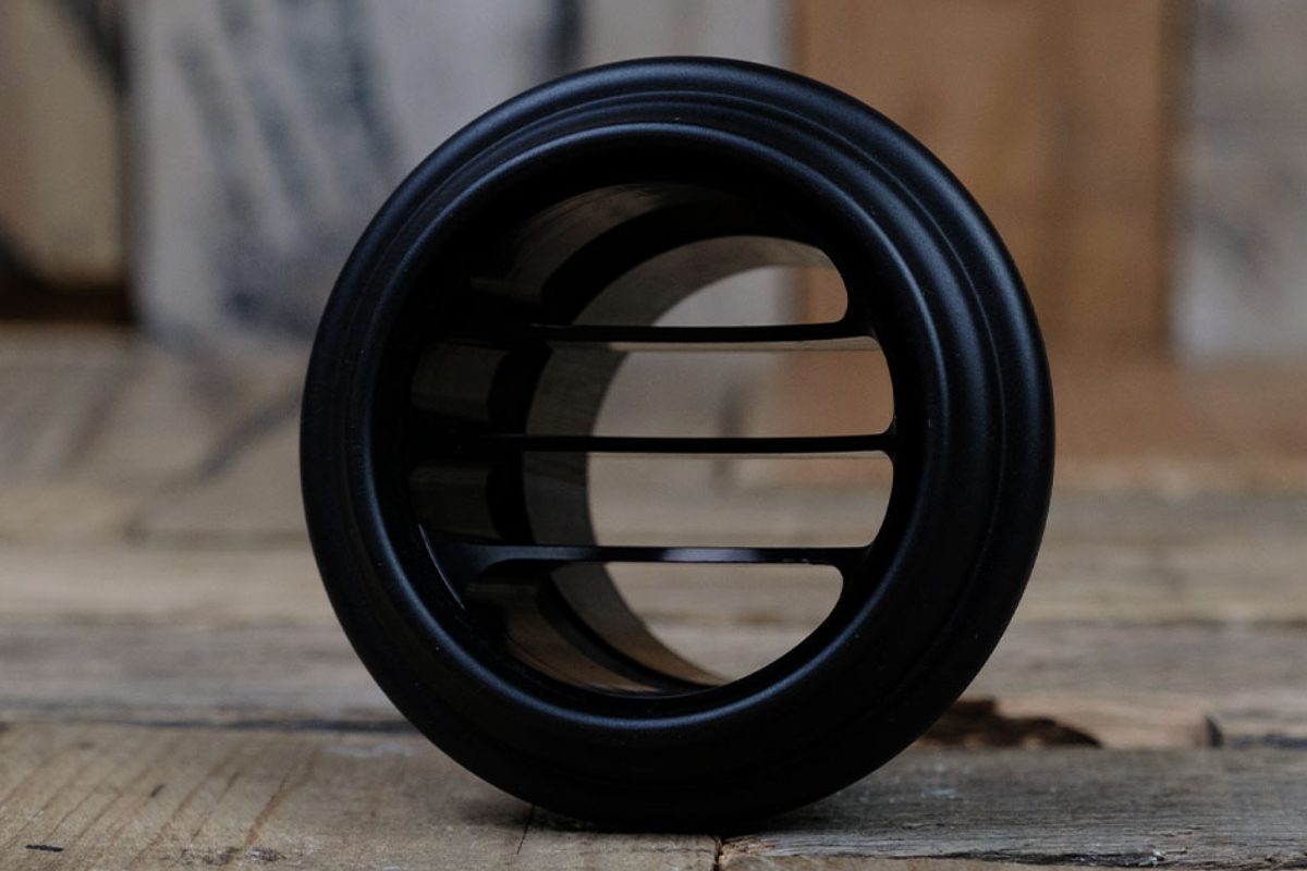 The Velocity Tres Vane A/C Vent includes a meticulously crafted CNC Machined 6061/T6 Aluminum housing and ball, which can be anodized to match your desired color scheme. Restomod Air maintains a stock of three finishes at all times: Satin, Polished (Bezel Only), and Synister Black. This wide range of options ensures that you can seamlessly integrate the Tres vent into your vehicle’s interior design.